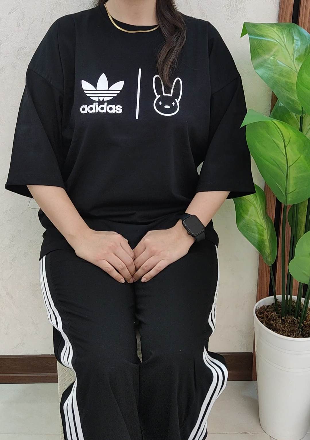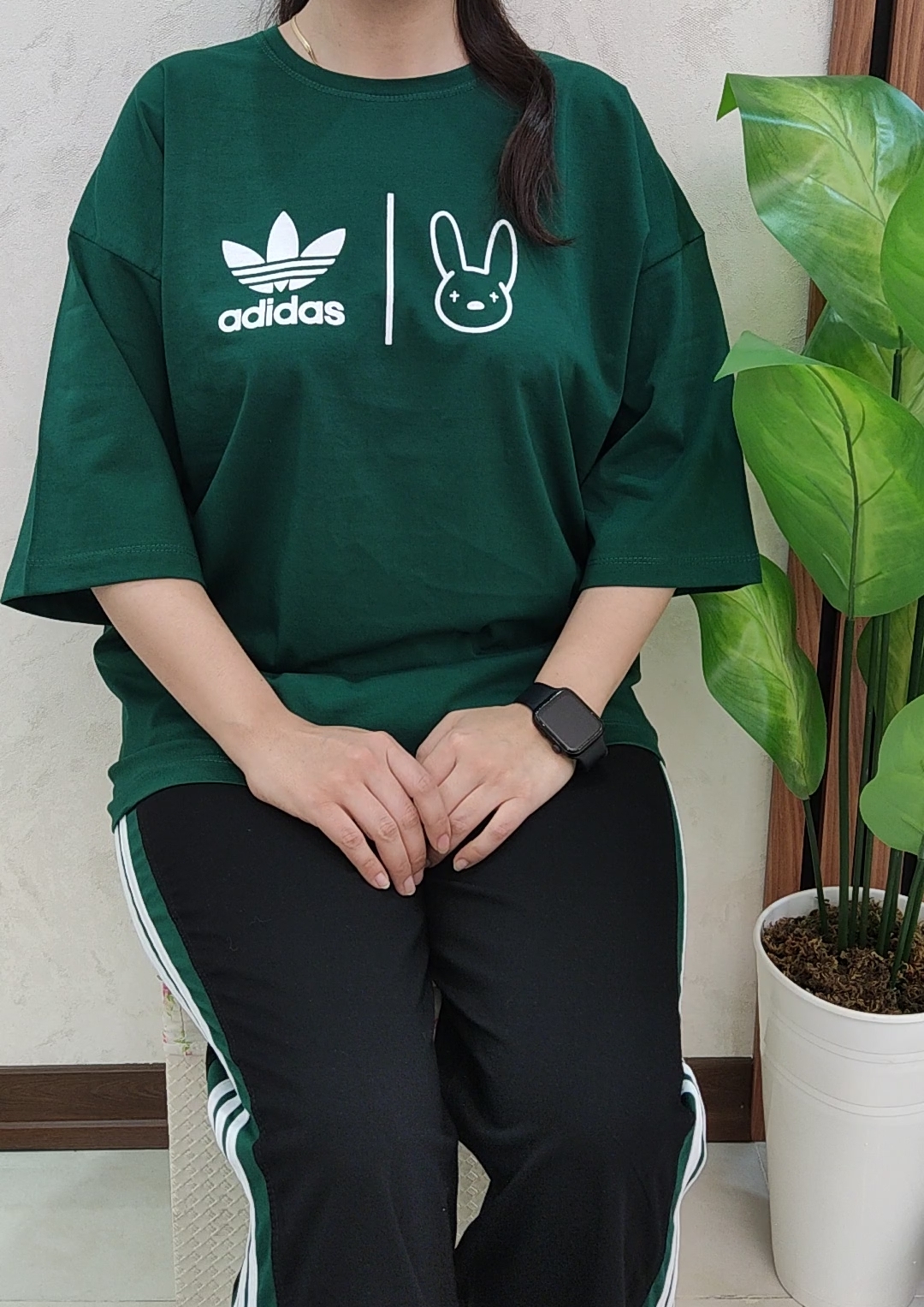 دور سینه 120/قد تیشرت 73/قد آستین از سرشانه 43/دور ران 66/دور باسن 120/قد شلوار 100/ده سانت کشسانی دارد