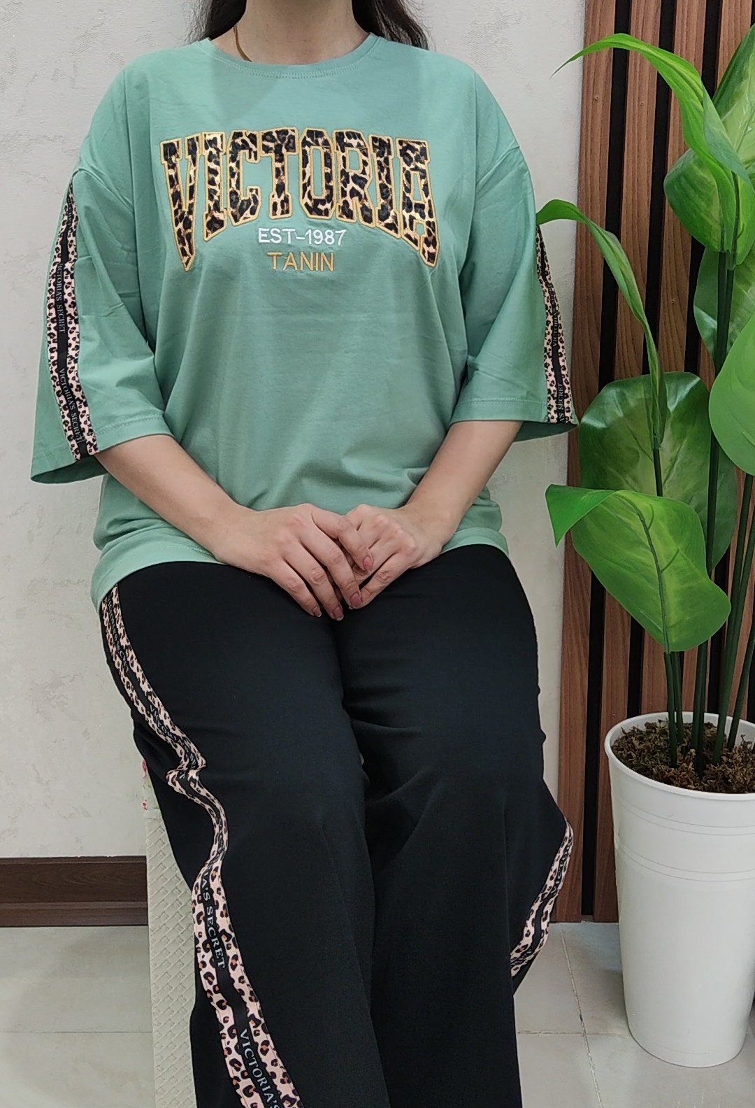ست بلوز شلوار دورس پنبه قلب پلنگی